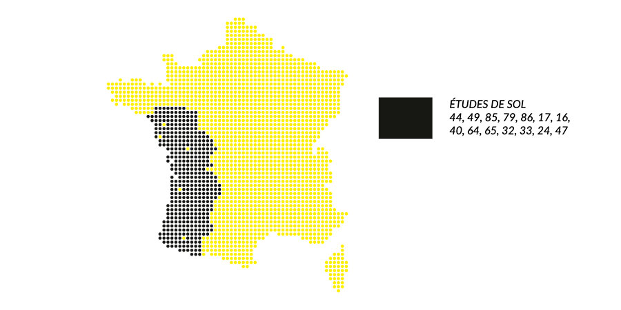 Les EXE + GPH (études d’exécution avec vérification des caractéristiques du sol) sont réalisables dans les départements suivants : Charente, Charente-Maritime, Loire-Atlantique, Maine-et-Loire, Mayenne, Deux-Sèvres, Vendée, Vienne, Pyrénées Atlantiques, Gers, Hautes-Pyrénées, Gironde, Dordogne, Lot-et-Garonne.