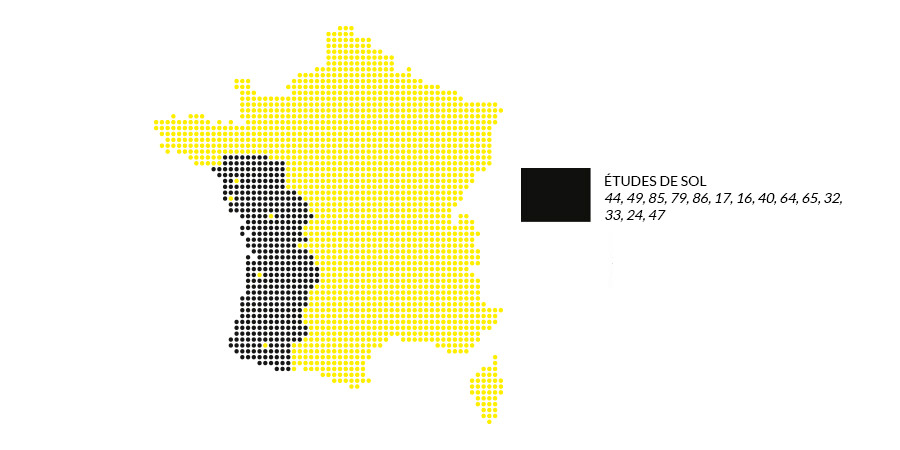La mission étude géotechnique G1 est réalisée par GPH dans les départements suivants : Loire-Atlantique, Maine-et-Loire, Vendée, Deux-Sèvres, Vienne, Charente-Maritime, Charente, Landes, Pyrénées-Atlantiques, Hautes-Pyrénées, Gers, Gironde, Dordogne, Lot-et-Garonne.
